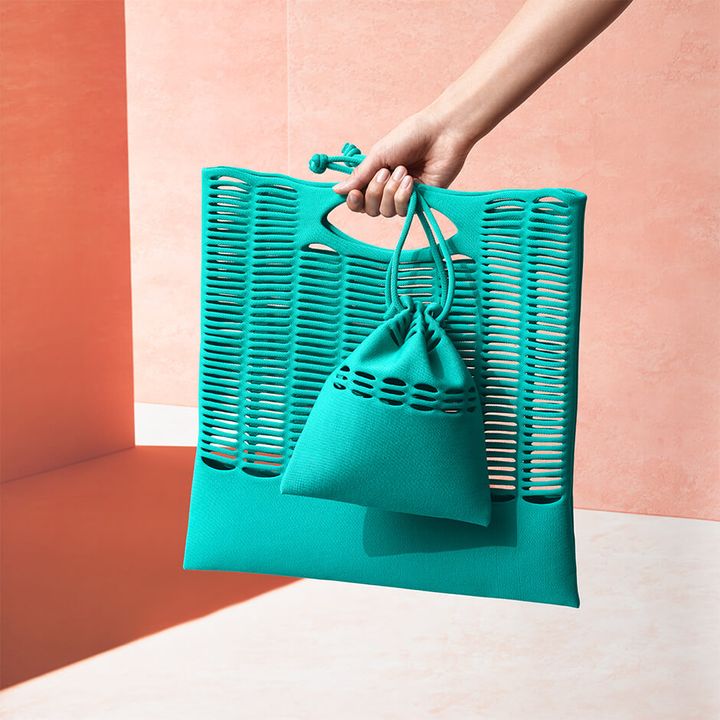 無縫製で仕上げられた軽量で柔らかなニットバッグ「MOKKO」は、水洗いが可能で、日常のさまざまなシーンに溶け込む逸品。
