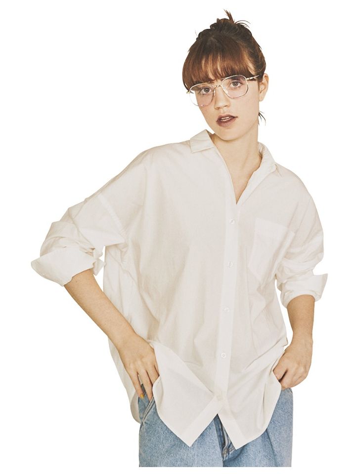 たとえばささいな変化がストレートに効いてくる、白シャツ姿に「服以外」で変化をもたらすとしたら? 手軽にとり入れられるアイウエアとリップの組み合わせを、テーマに沿って披露。 着回す白シャツ 16,500円/ルージュ・ヴィフ アンナ(ルージュ・ヴィフ ラクレ ルミネ有楽町店) デニム 18,700円/ニードバイヘリテージ(ゲストリスト)