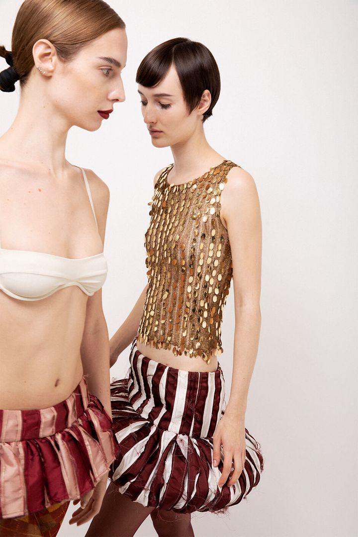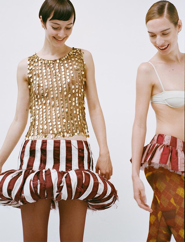 left - bra by HER SENSES, skirt by FERNANDA CASTRO, tights stylist's ownright - top by THE PARISIAN VINTAGE, skirt by FERNANDA CASTRO, tights stylist's own