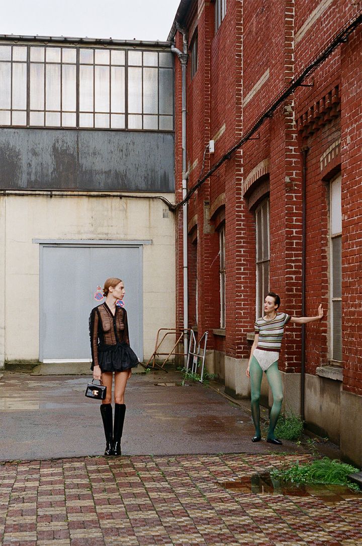 left - top by TURN, skirt by TRANSE, boots and bag by CÉLINEright - top by THE PARISIAN VINTAGE, bodysuit by SEHNSUCHT ATELIER, shoes by KENZO, tights stylist's own