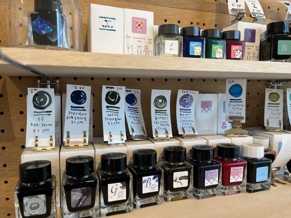 店内には試筆台もあります。バリエーション豊富なので、ともすると迷い沼に陥りがちですが、色味や質感を試してから気に入ったものを選べるのは、ここに来るだけの価値がありますね。