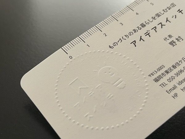 いただいた名刺にはエンボスされたお店のスタンプが。オリジナルのオーダーも可能。