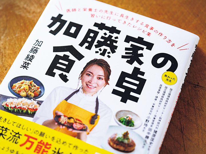 医師や栄養士に学んで、綾菜さん考案の特製出汁を使ったおいしい減塩食のレシピ本を出版。『加藤家の食卓』¥1,496(アスコム)