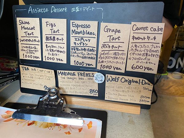 パフェとすごく悩んだんですが、何かアンテナが張りタルトにしました。 友達と一緒に「無花果タルト」を注文したところ、残り1個とのことでしたが、ご好意で半分ずつにできるとのことで私は「シャインマスカットタルト」にしました(どちらも1000円)。