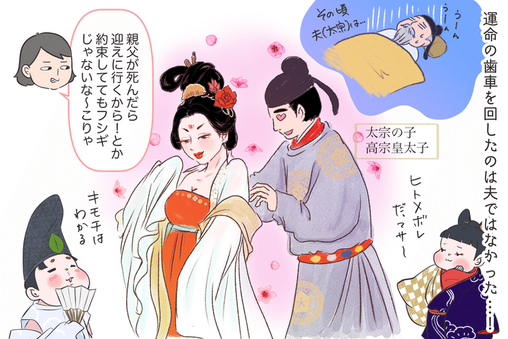 しかし運命は太宗の死に際して転がり始めます。太宗の見舞いに来ていた皇太子の高宗と後宮でバッタリ…!!