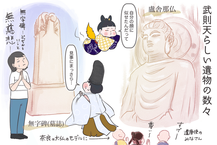 日本との関わりは意外と濃厚な武照改め武則天。先に挙げた洛陽の盧舎那仏は、遣唐使がスケッチして持ち帰り、奈良の大仏の元となっています。