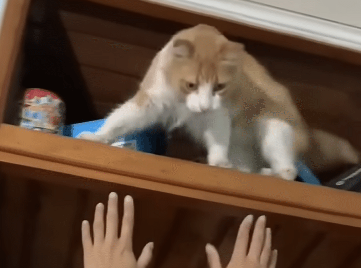 高い場所から降りられなくなった猫、助けてくれた人にちゃんと「お礼」を伝えるよ!