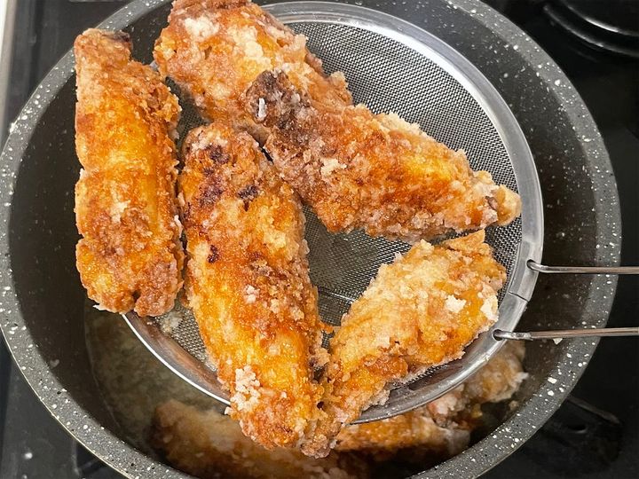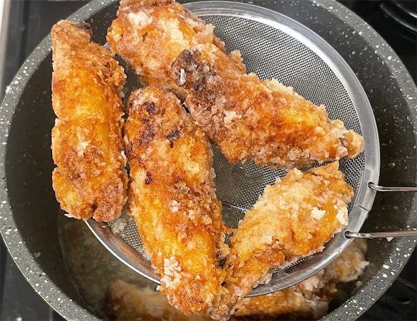 ・揚げはじめは手羽中に触らないようにすると、衣が剥がれにくい