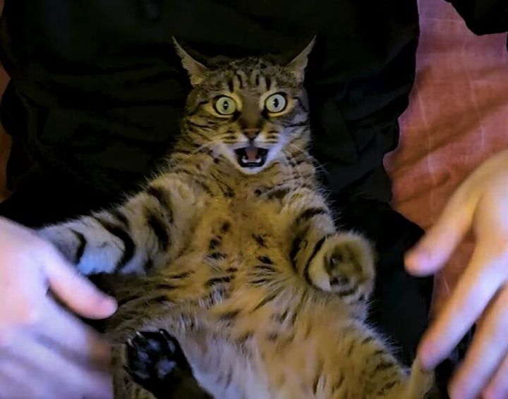 3. ふにゃー! 遊びにムキになる猫さん、目を丸くして本気出すぞ!