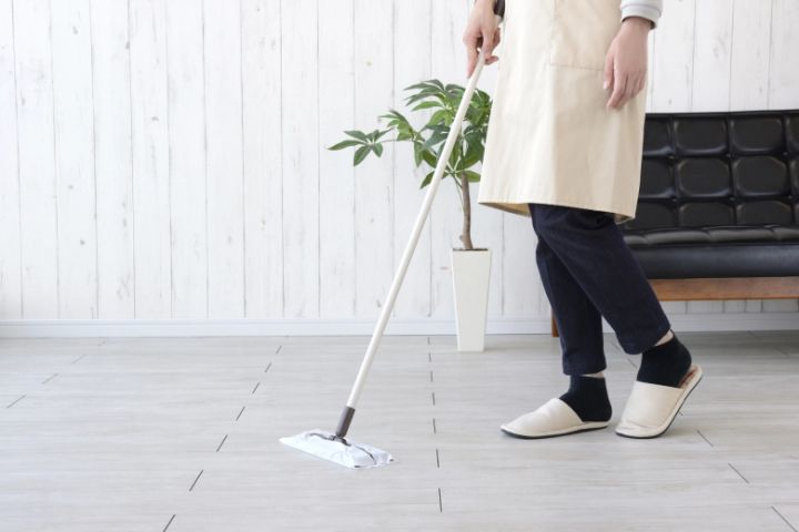 床掃除でおなじみ「クイックルワイパー」などのフローリングモップで、床のホコリやごみを取り除きましょう。