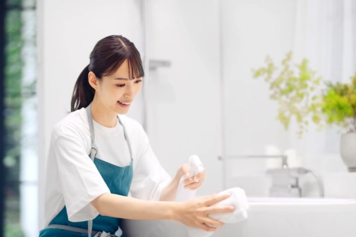 仕上げに布などで泡を拭き取り完了です。シンクやバスタブなど、場所によってはスポンジを使用するといいでしょう。