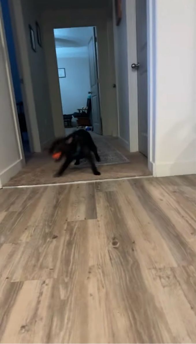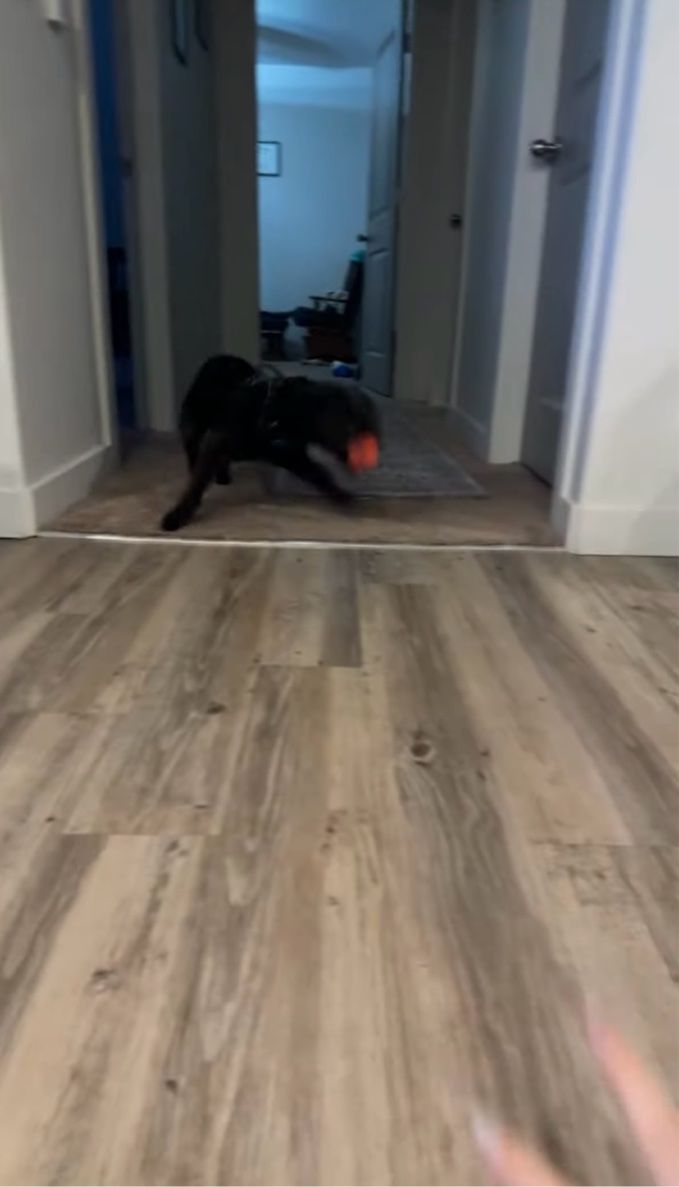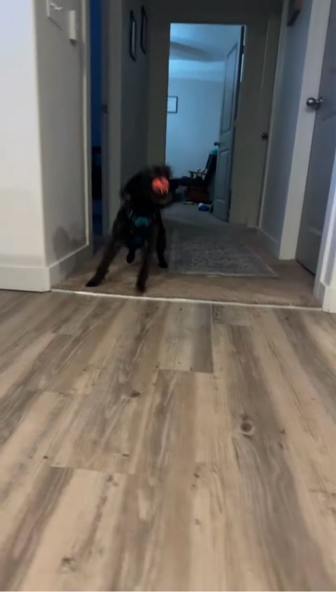 こちらの動画は、アメリカ・ユタ州センタービルのとあるお宅で撮影されたもの。 飼い主さんとボール遊びに興じる、ミニ・ラブラドゥードルの子犬が登場します。