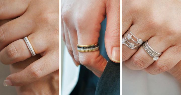 「婚約指輪と結婚指輪、キャトル2本を重ね付け。ファッション性があり、普段使いできるのが決め手で、婚約指輪も一粒ダイヤのキャトルにしました。夫の30歳の誕生日プレゼントにキャトルリングを贈り、夫婦揃って2本重ね付けを楽しんでいます。私たちにとって思い出深いリングで、いつかもう1本足したいなと思っています。」橋本礼子さん・40歳(会社員/7歳の男の子ママ)