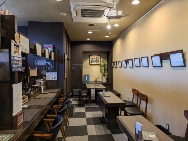 落ち着いたBGMと温かい空気感に、来てよかった!と期待も高まります。左側はコーヒーだけの方にお勧めのカウンター席で、お食事をいただく方はテーブル席が食べやすいとのこと。カウンターの木の色合いや、テーブルのデザインのセンスも良く、早くも長居したいモードになってしまいます。というのも、店主は大学で写真を学んでいたそうで、一時期は写真家を目指していたと言いますから、センスが良いのも頷けます。