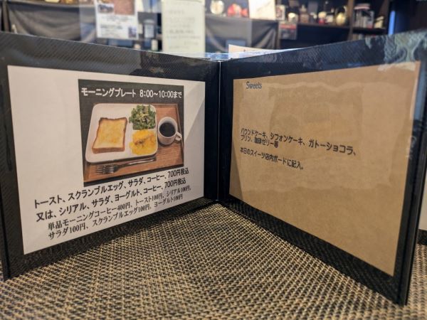 自家焙煎珈琲のお店なので、珈琲の種類は勿論豊富なのですが、レストラン並みにフードメニューも充実しているんです。11時から始まるランチ(無くなり次第終了)は、こちらのお弁当タイプが最近人気とのこと。お隣の方が召し上がっていたのですが、大きなおひつのようなお弁当箱に入っていて、とってもおいしそうでした。(インスタに載っています)