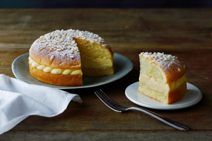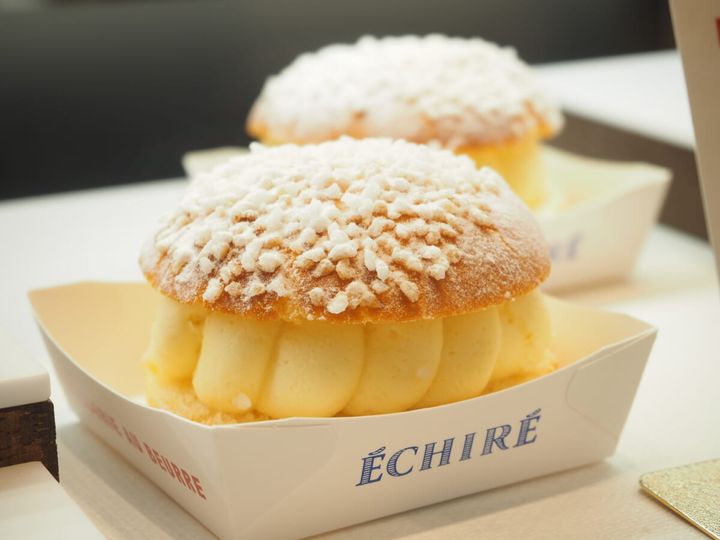 フランス・プロヴァンス地方の伝統的なスイーツ「トロペジェンヌ」をエシレ流にアレンジ。ふんわりとしたブリオッシュ生地の中に、なめらかなバタークリームがぎっしり詰まっています。生地にもクリームにもエシレ バターを使った贅沢な味わいはまさに至福。WEB予約販売のみで金土日にしか受け取ることのできない、5号サイズの「グランド トロペジェンヌ・エシレ」も特別なスイーツとしてファンに愛されています。