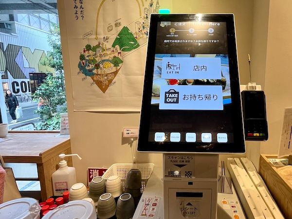 『日本人の伝統的な食文化』であるおにぎりを握りたてで提供し、おいしさを伝えていきたいという「鎌倉屋米店」。タブレットで支払いや注文ができます。 忙しい日々の中でのランチタイムのひととき、カウンター席からミカン下北の歩道を眺めながら、お出汁のきいたアツアツの豚汁とともに温まってみては?