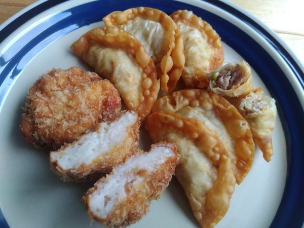 切干大根の入った揚げ餃子と海老たっぷりの海老カツ