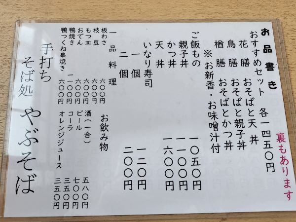 メニューはこの通り。お蕎麦の他にうどんもあります。