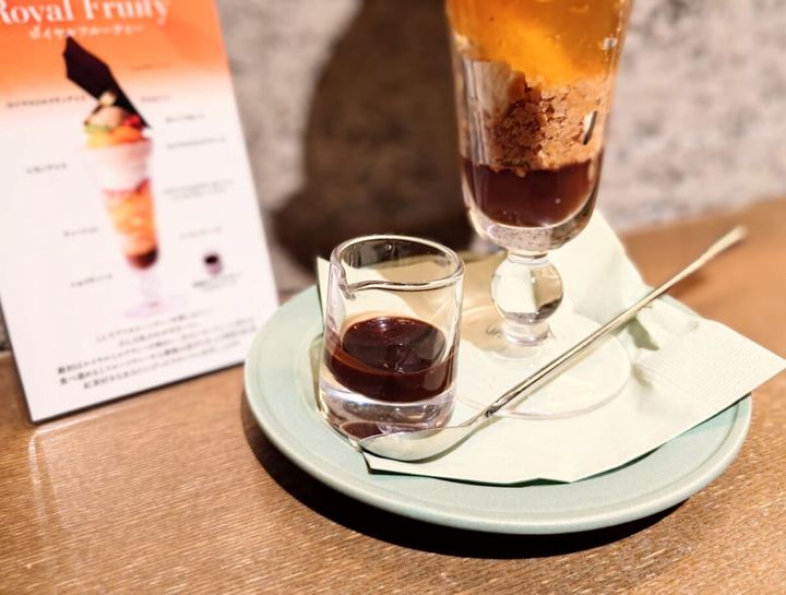 ロイヤルミルクティーと紅茶をメインに香りに浸れるパフェ。しっかりとチョコレートも堪能できる逸品でした。