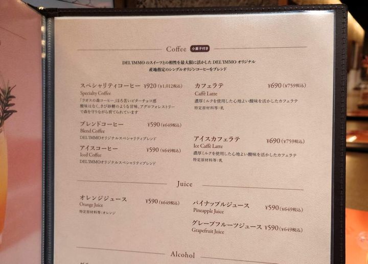 デリーモオリジナルのスペシャリティコーヒーやカフェラテなどのコーヒー系からお酒系など種類豊富(税込649円〜)。お酒系を除くドリンクをスイーツ・お食事とセットにすると「税込200円OFF」になるので、おすすめです。