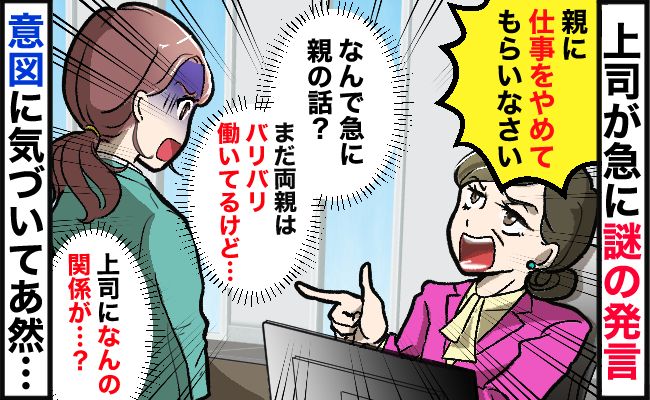 ワーママの私に職場の上司が「親に仕事を辞めてもらいなさい」なんで急に親の話…?意図に気づいてあ然