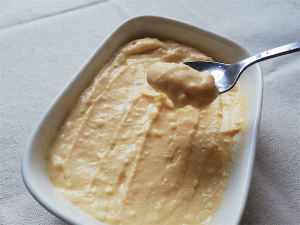 容器に出してみたら、ちょっとぶつぶつしてタルタルソースのような見た目ですが、口当たりは滑らかなので問題なし!