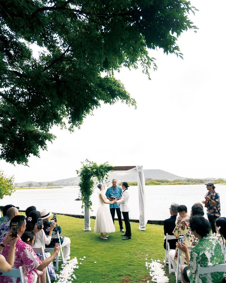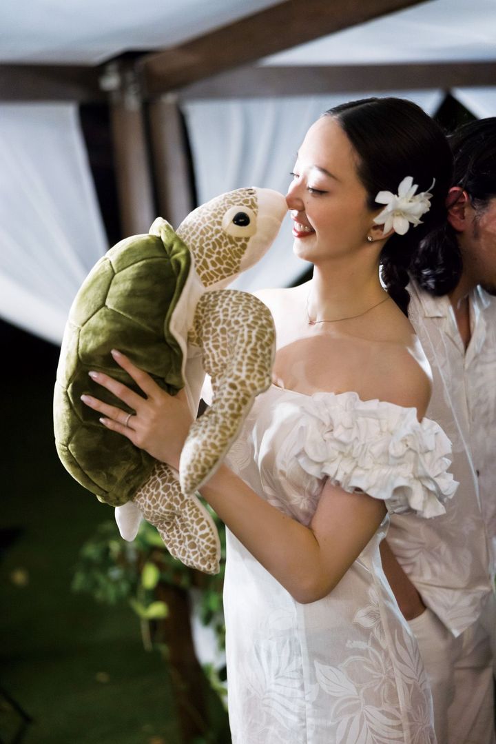 花:10日間ハワイに滞在し、各家族と式当日を振り返り余韻を味わえたのもよかったです。結婚式を経験してみて、カタチにする、ふたりでその作業をするということが、こんなにも大事だと身をもって知りました。もちろん結婚式では華やかな装いを楽しめるのは確かですが、きれいなドレスを着るだけの日じゃなかったと気づくはず。結婚して5年後でも10年後でも、いつでも、何度でも。結婚式は絆が深まる特別な時間です。
