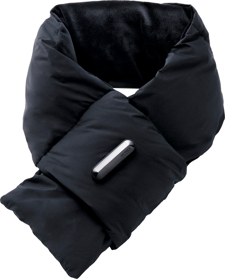 スイッチを入れてわずが5秒で首元に快適な温かさを届けるマフラー。バッテリーはとり外さずに簡単に充電ができるし、水を弾く素材でなんとも至れり尽くせり! POWERMUF ¥11,880/MYTREX