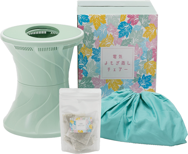 イスと湯沸かし鍋が一体化したコンパクトスリム設計で、手軽によもぎ蒸し。心地いいと感じる温度に調節して、1回20〜40分間座ればOK。マントから手を出すことができるので、スマホを見ながらリラックス。電気よもぎ蒸しチェアー ¥24,750/ミヤココーポレーション