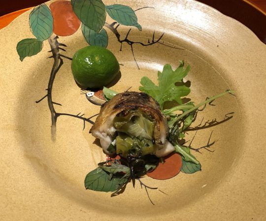 ネギを巻いたノドグロは、すだちを絞って頂きます。ノドグロ好きな私、とっても嬉しい。皮はパリッ身はほわっとやわらかく、ネギと一緒に頂きましたが、ネギがアクセントになってお口の中が喜んでいました(笑)。ノドグロ大好き。