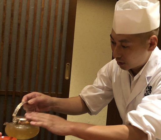 親方が、土佐酢と出汁をつぎに来てくださいました。