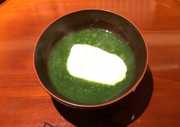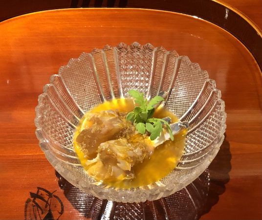 揚げ物の後は、お口の中をスッキリさせる為、土佐酢と出汁を味わいます。