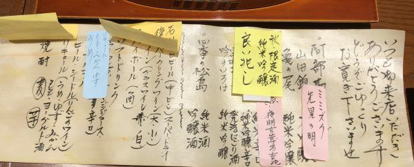 阿部勘酒造店の酒蔵から「男山と相性のよい料理をつくって欲しい」というお話しがあり、日本酒に惚れ込んでいた先代が引き受け、二代目親方も先代の意向を引き継ぎ、今に至ります。
