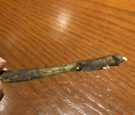 石川県復興応援商品だという「QINO SODA(キノソーダ)黒文字」が気になり、どんなソーダなんですか?とおかみさんに尋ねたところ木の枝を持ってきてくださいました。