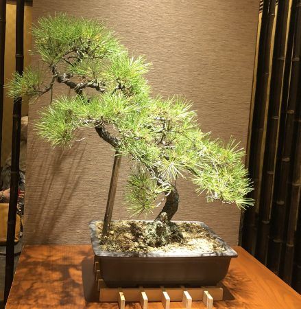 左手奥に8名までの個室と4名までの個室が2つあります。盆栽が飾られた和室に案内されました。落ち着いた雰囲気に心が和みます。
