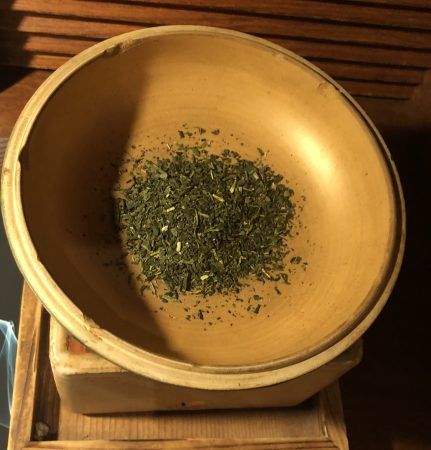入って左側に7席のカウンターがあり、親方がいらっしゃいました。廊下には、炒ったお茶が置かれていてとってもいい香りがしました。