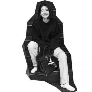 ニット※別注¥176,000(フィルメランジェ フォー RHC/RHCロンハーマン)中に着たブラウス¥28,600(ビリティス・ディセッタン/ビリティス)チノパンツ¥6,990(Gap)イヤリング¥8,400(アビステ)バッグ¥25,300(カラコラム アクセサリーズ/ロンハーマン)パンプス¥42,900(ピッピシック/ベイジュ)ソックス(スタイリスト私物)