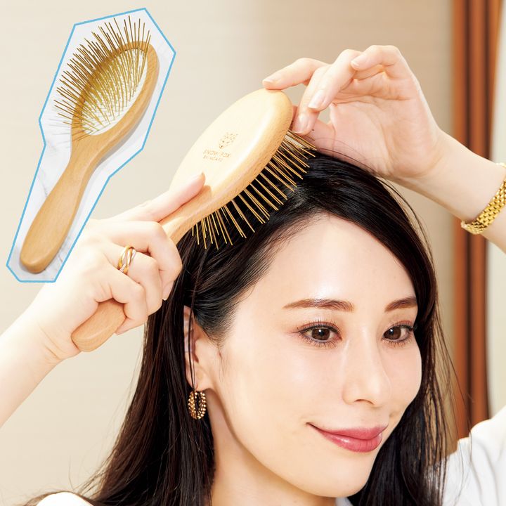 「スノウフォックスのカッサブラシを愛用。よくしなるロングピンが心地よく頭皮をマッサージしてくれます」