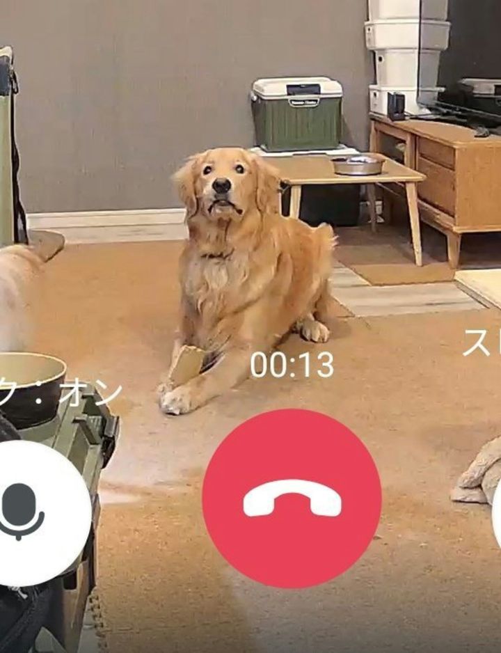 お留守番中の愛犬は、むぎとエールさんがいないと思っていたのでしょう。「え?なんで声がするの?」という不思議そうな顔をしていますね。バレちゃった?という声が聞こえてきそうな顔がかわいいです。