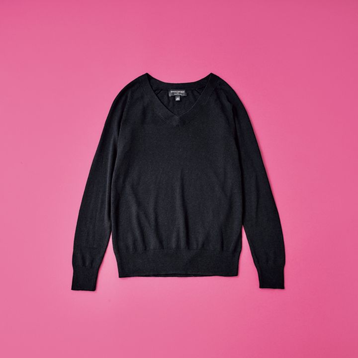 なめらかな肌触りなのに生地がしっかりしているから、飽きずに使える「バナナ・リパブリック」の定番ニット。Vネックが浅めなので使い勝手がよく、ちらっとTシャツをのぞかせてカジュアルに着たりもしています。