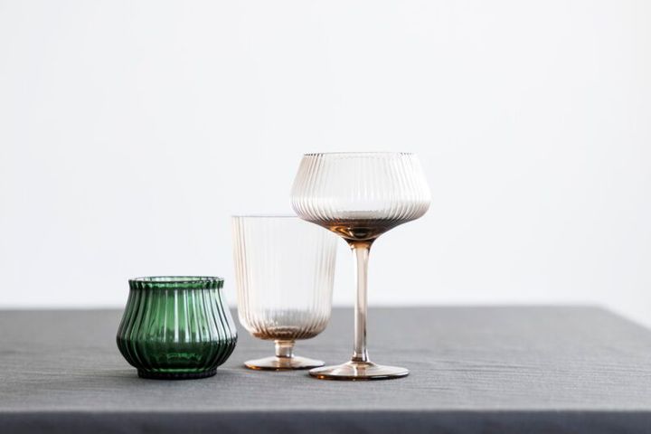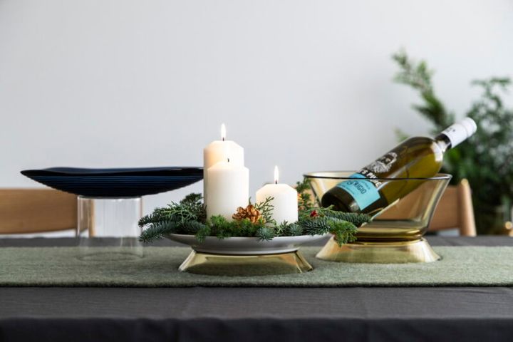 数が必要なグラス類は、できればお手頃価格で揃えたいもの。ガラスに薄い色がついているものやライン入りのもののほうが高見えするのでおすすめです。キャンドルホルダーも、クリスマスカラーの緑でそろえてシックに。