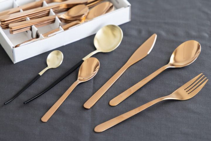 ゴールドのカトラリー(フォルヌフト・24点セット) ¥3,999/イケア