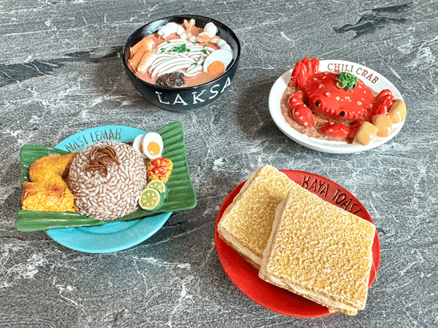 チリクラブやラクサ、コピ(シンガポールではコーヒーのことを「コピ」という)など……どれも可愛い!