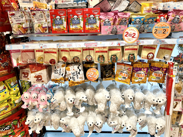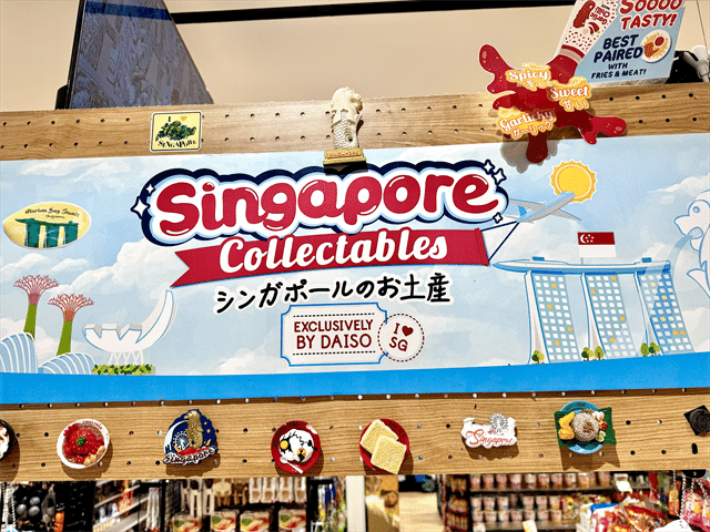 シンガポールにあるダイソーの店内には、日本で販売されている見覚えのある商品がズラリと並んでいます。筆者が訪れたキャピトル シンガポールのお店では、セルフレジのすぐ近くに、シンガポールのお土産コーナーが設けられていました。