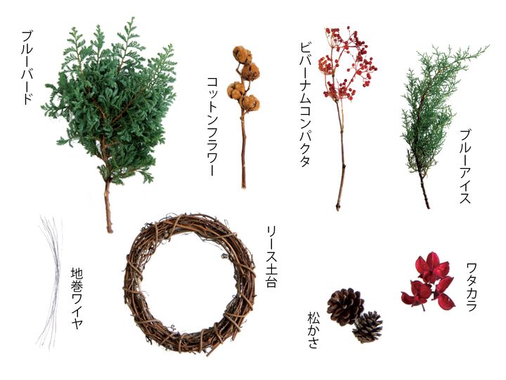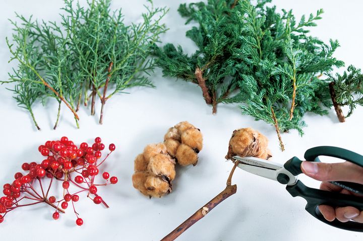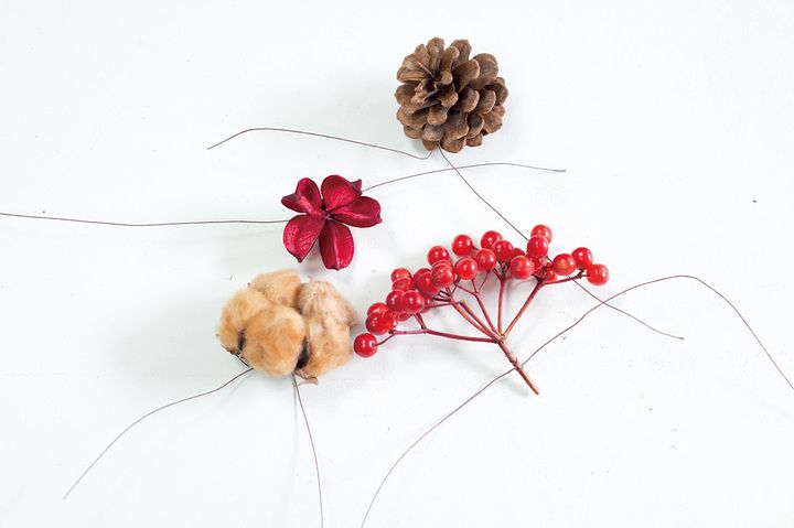 ※クリスマスシーズンに入ると花材を1 本から購入しやすくなります。ない場合はオンラインショップで探すか、お店で代用品を相談しても。