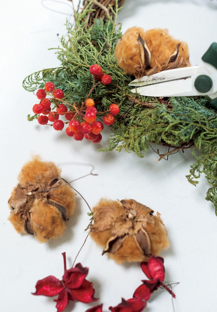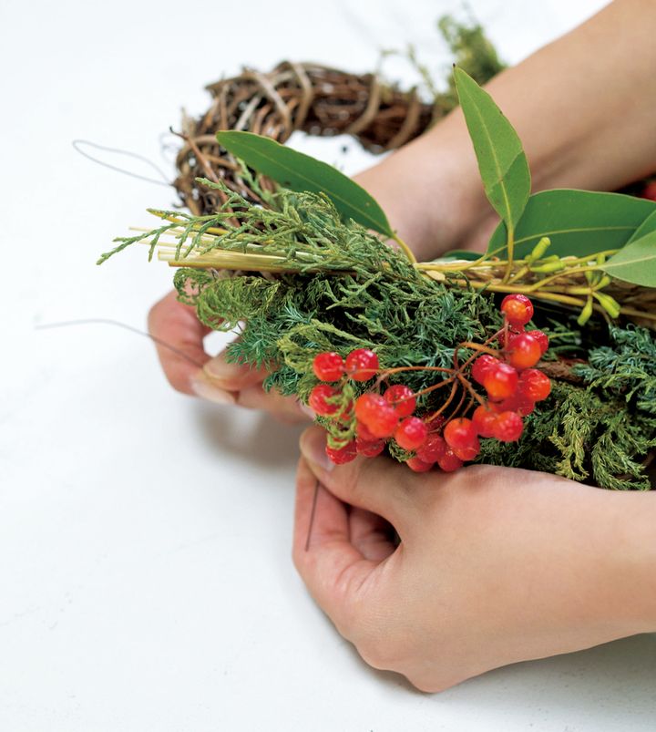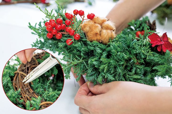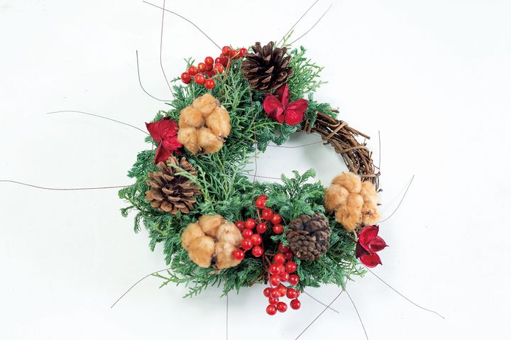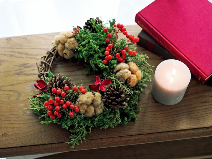 今回は、クリスマスからお正月まで飾れる手作りリースの作り方をご紹介。
