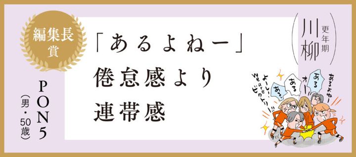 編集長賞はPON5さんの「『あるよねー』 倦怠感より 連帯感」