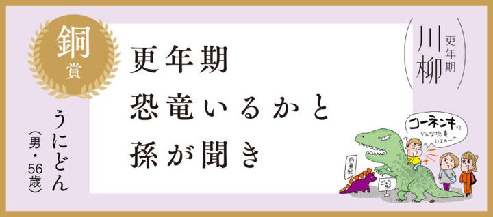銅賞はうにどんさんの「更年期 恐竜いるかと 孫が聞き」