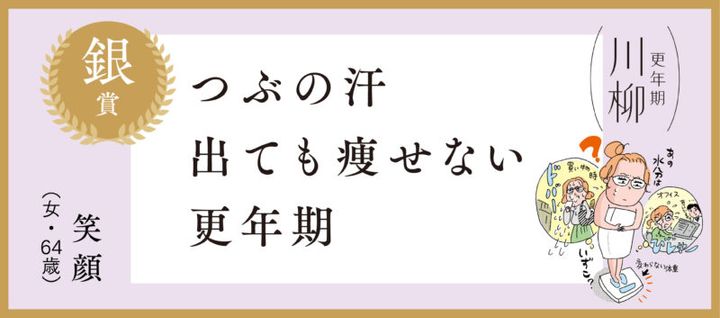 銀賞は笑顔さんの「つぶの汗 出ても痩せない 更年期」